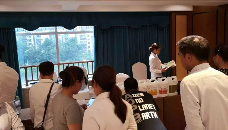 作为地面护理行业的资深企业,三瑞高材拥有“亮丽膜”地板蜡系列护理产品和“蓝色强力”清洁剂系列清洁产品,为地面护理提供全方位、系统化的服务和解决方案。此次培训会上,杨经理也向大家展示了三瑞高材开发的各种地板蜡和清洁剂产品,让学员能放心、舒心、开心的解决地面护理中遇到的各种问题,从培训中切实受益!