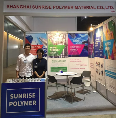 展会期间,三瑞高材接触了许多来自马来西亚、新加坡等不同国家做预制件、预拌混凝土的客户,由于东南亚市场砂石等材料不佳,含泥量较高,并针对这一特性为客户推荐公司主研发的功能型母液VIVID-500(D)高减水型、VIVID-500(F)抗泥型、VIVID-500(G)保塌型母液,此次我们还展出了固体减水剂和超强晶核,同时为客户提供定制化的产品和技术服务,受到众多客户的认可和推崇。