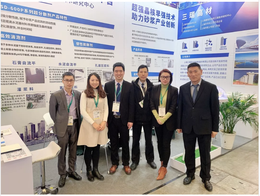 作为此次的参展商之一,三瑞高材展示了全新的本体聚合工艺制备的粉体聚羧酸减水剂,及用于防静电地坪的碳纳米管导电浆料,同时我们也将展出自主研发生产的全新一代有机/无机杂化的纳微结构早强剂-超强晶核,该早强剂能显著提高水泥基材料12小时内的超早期强度。