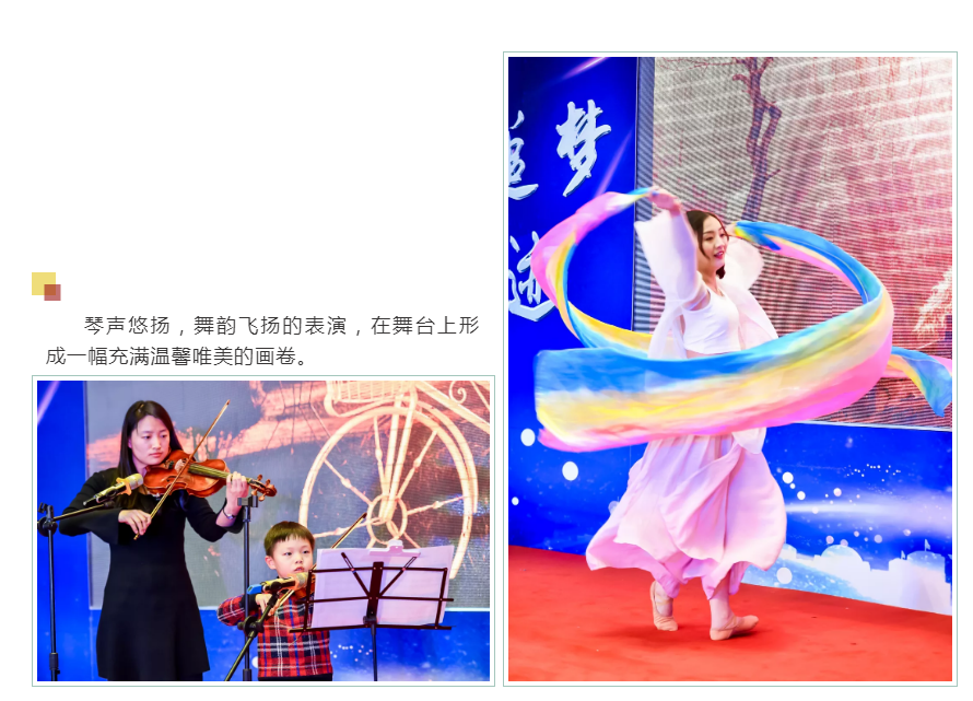 琴声悠扬,舞韵飞扬的表演,在舞台上形成一幅充满温馨唯美的画