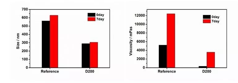 瑞固新能(上海)材料科技有限公司在分散剂的结构设计、合成与开发方面具有丰富的经验与技术的积累,针对于水性体系分散CNTs开发出LIB-D200分散剂,在多家CNTs和石墨烯浆料生产厂家得以应用。相对于传统分散剂,LIB-D200是一类高性能润湿分散剂,具有独特的亲碳材料的基团,易吸附在碳材料表面,能够形成稳定的空间位阻排斥力,避免颗粒聚集,能够显著降低浆料粘度,提高浆料固含量,能够显著改善浆料的稳定性,储存过程中不易发生沉降,缓解浆料增稠现象,适用于水性体系对各类碳材料的分散,特别推荐用于难分散的碳纳米管和石墨烯体系。