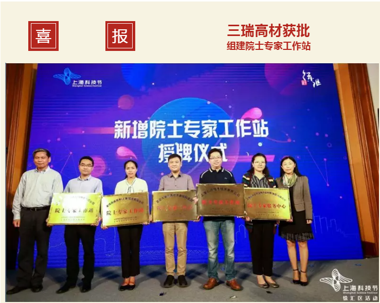 5月17日下午,上海科技节徐汇区活动开幕式在中科院上海生命科学研究院隆重举行。开幕式活动重要环节之一是院士专家工作站授牌仪式,三瑞高材荣幸获批建站并出席了授牌仪式。