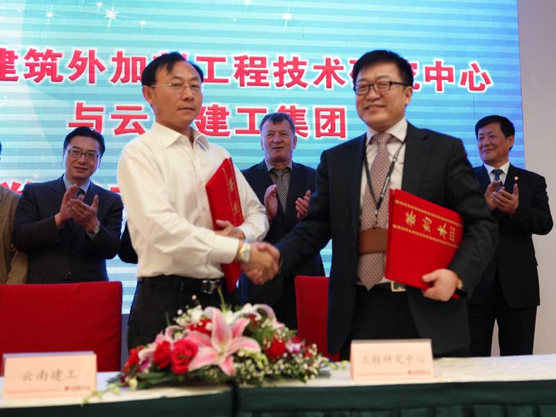 2013年4月26日上海建筑外加剂工程技术研究中心成立大会暨技术研讨会顺利举行。在成立大会上,举行了中心成立揭牌仪式、网站开通仪式、技术委员会成员聘任仪式,任命了中心主任和副主任,并举行了中心与德国慕尼黑工业大学的国际合作项目签约仪式,以及与云南建工集团的技术转移项目签约仪式。成立大会之前,举行了技术研讨会。来自德国慕尼黑工业大学的Johann Plank教授,上海大学的施利毅教授,北京工业大学的王子明教授,武汉理工大学的丁庆军教授以及工程中心的王伟山博士做了精彩的报告。来自主管单位、行业、协会、企业和合作伙伴的100多位嘉宾出席了中心成立大会和技术研讨会。
